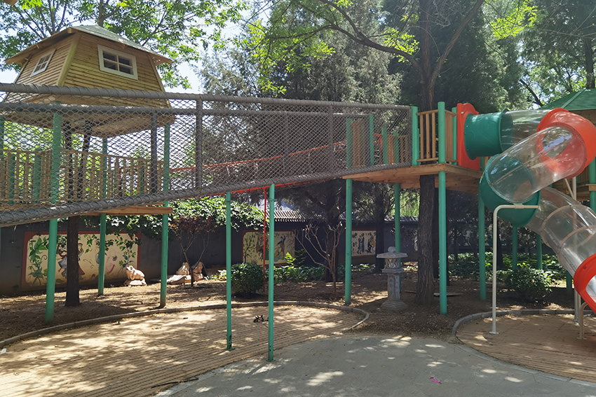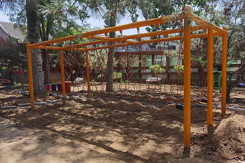 繩網(wǎng)橋,走在上面是不是 有空中行走的感覺,相當鍛煉孩子們的膽量了。